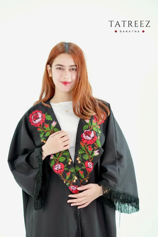 Luxurious Black Bisht with Delicate Handmade Embroidery – Enchanting Velvet of the Three Stars (Mokhmal El-Talat Nujum)