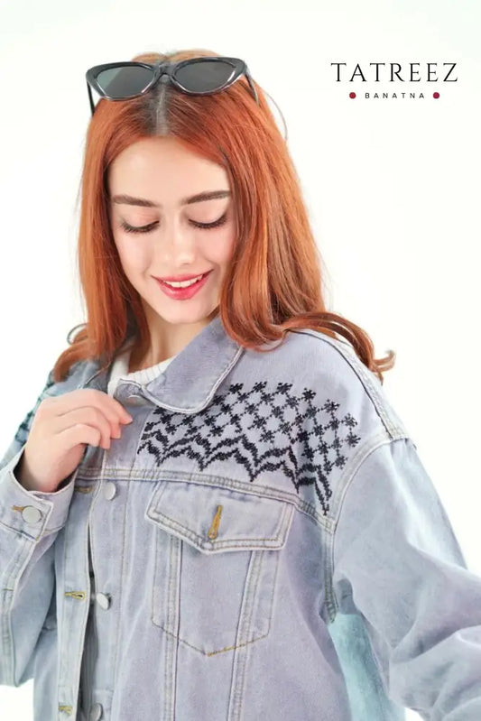 Handmade Pink Jeans Jacket with Palestinian Heritage Motifs