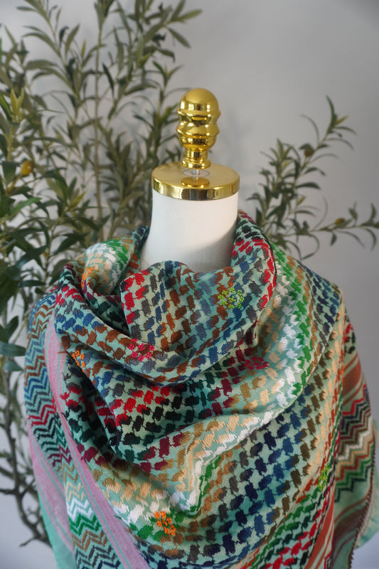 كوفية ملونة يدوية التطريز بالأخضر الزاهي