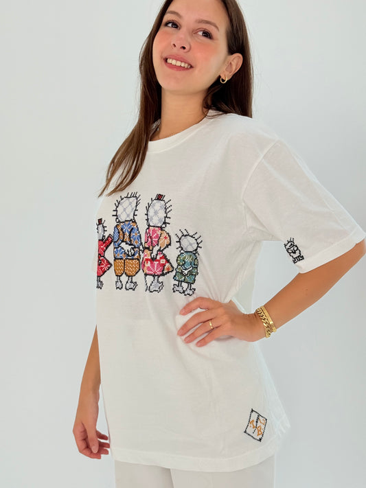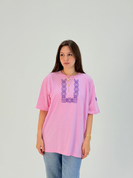 تيشيرت تطريز على شكل حرف U | تيشيرت قطني فلسطيني مصنوع يدويًا
