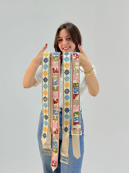 حزام مطرز بتطريز المدن الفلسطينية | حزام خصر قابل للتعديل مصنوع يدويًا