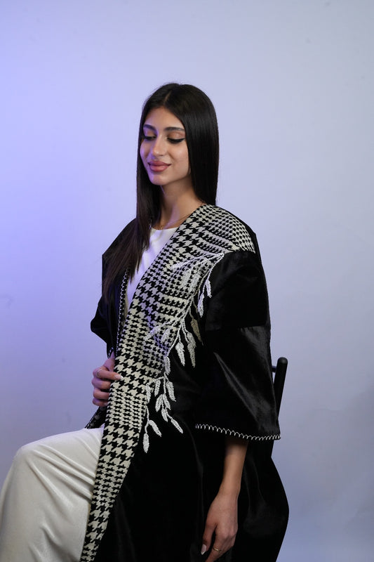 ثوب كوفية مخملي مطرز بالخرز | تطريز بناتنا