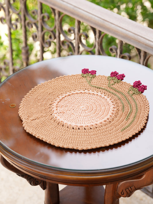 مفارش كروشيه مستديرة | طقم ديكور طاولة مزهر | تطريز بناتنا