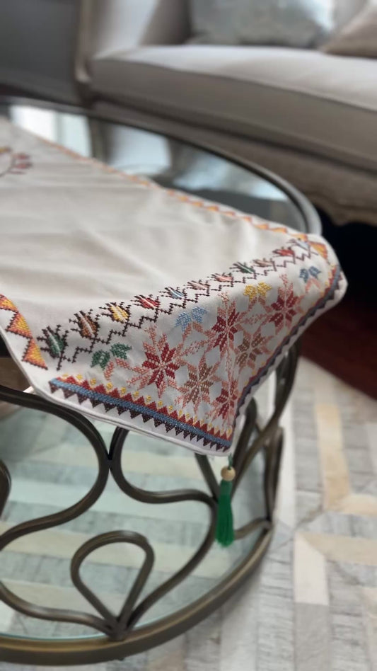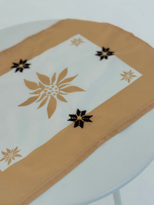 غطاء طاولة مطرز | لون الشمبانيا والبيج | صناعة يدوية