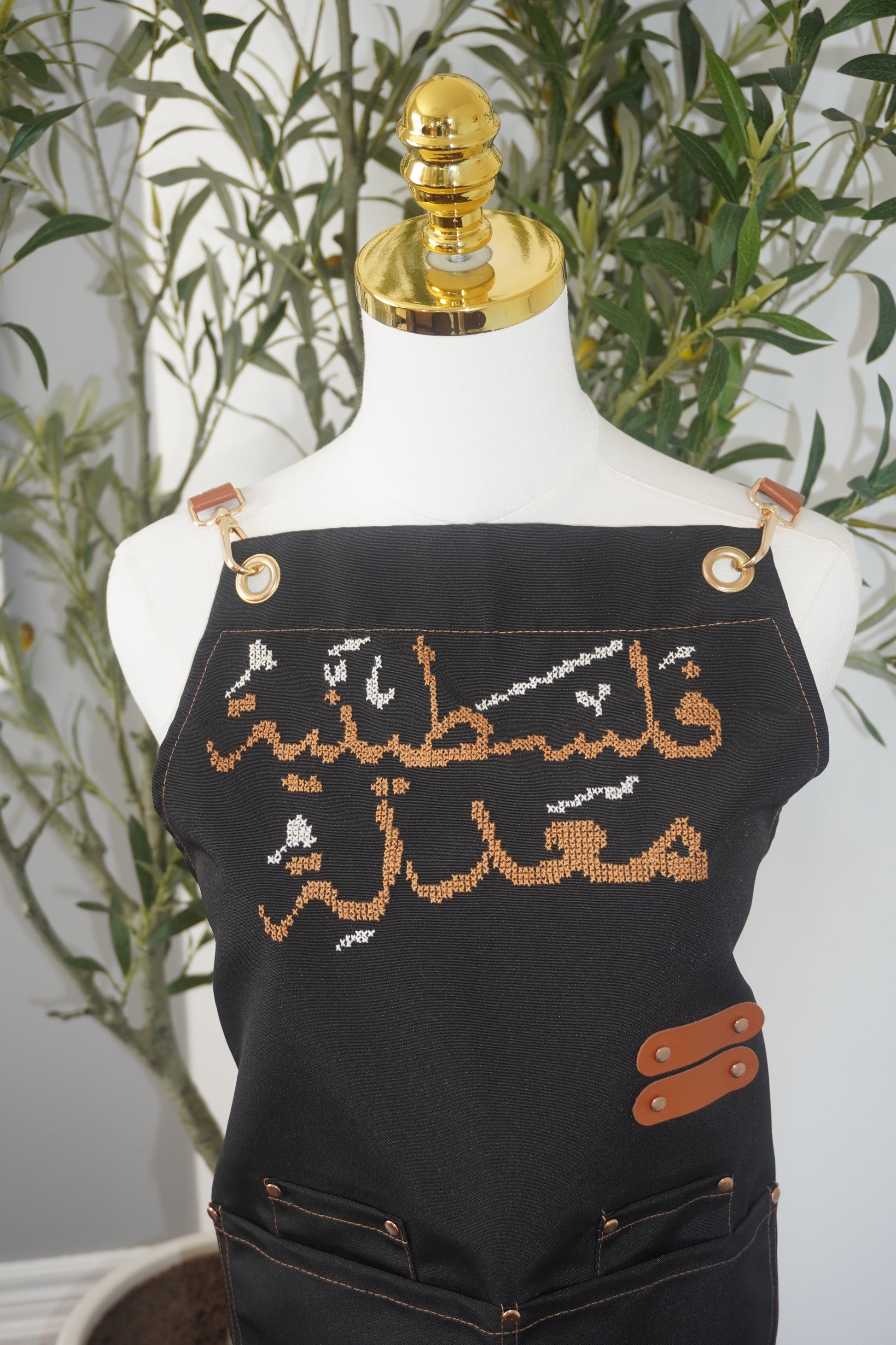 احتفل بمزيج من الثقافة والوظائف مع هذا المريول القابل للتعديل الذي يتميز بأشرطة رمادية يمكن ربطها في الخلف لتناسب أي شخص. يبرز المريول تطريز يدوي بلون كُمُوني لتصميم فلسطينية معدلة، مستوحاة من تقنيات التطريز التقليدية باستخدام خيوط DMC الملونة. تتضمن هذه القطعة العملية جيوبًا أمامية عميقة وخط خصر ناعم ومناسب، مما يجعلها مثالية للطهي مع الاحتفاء بتراثك."