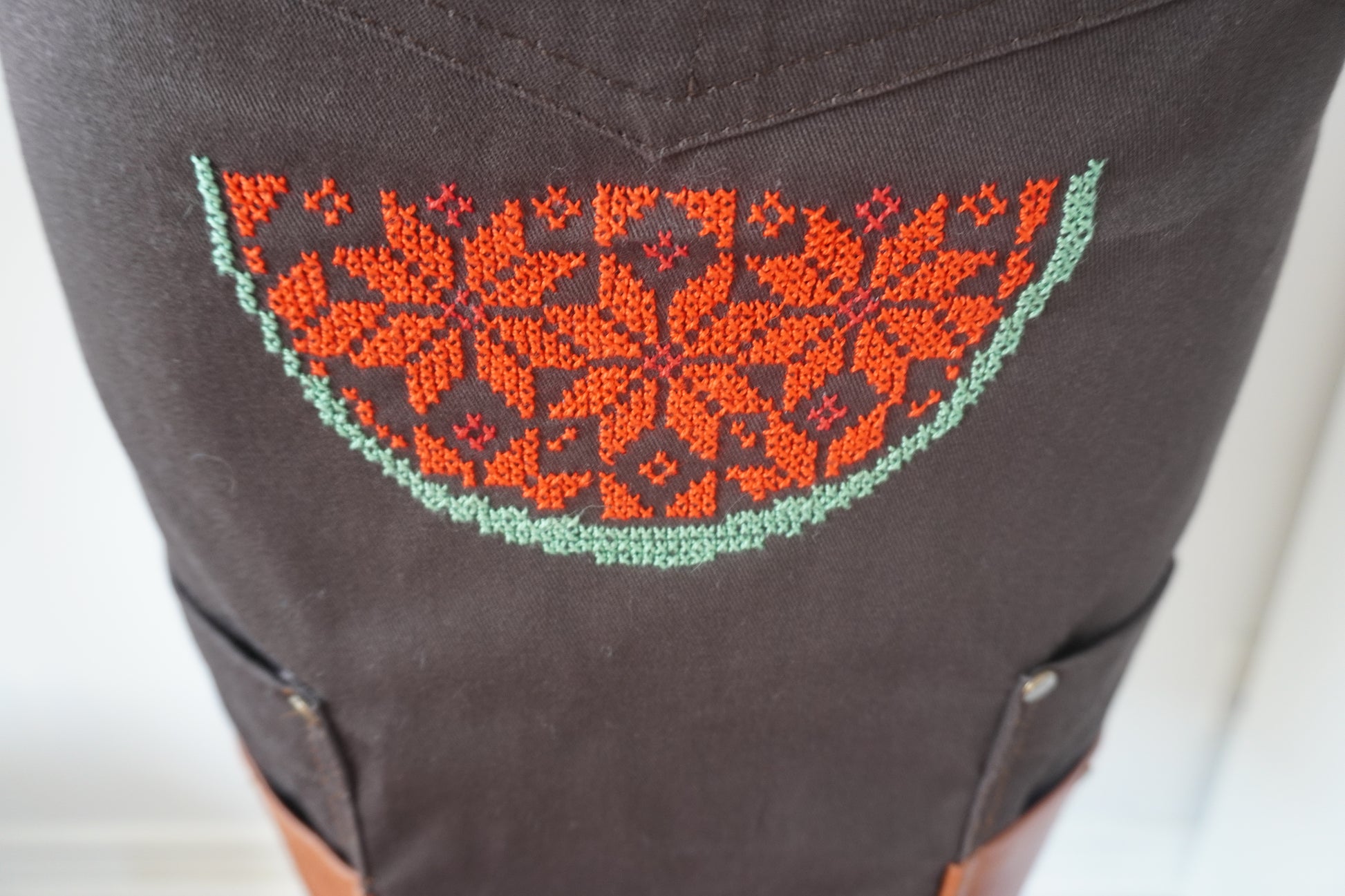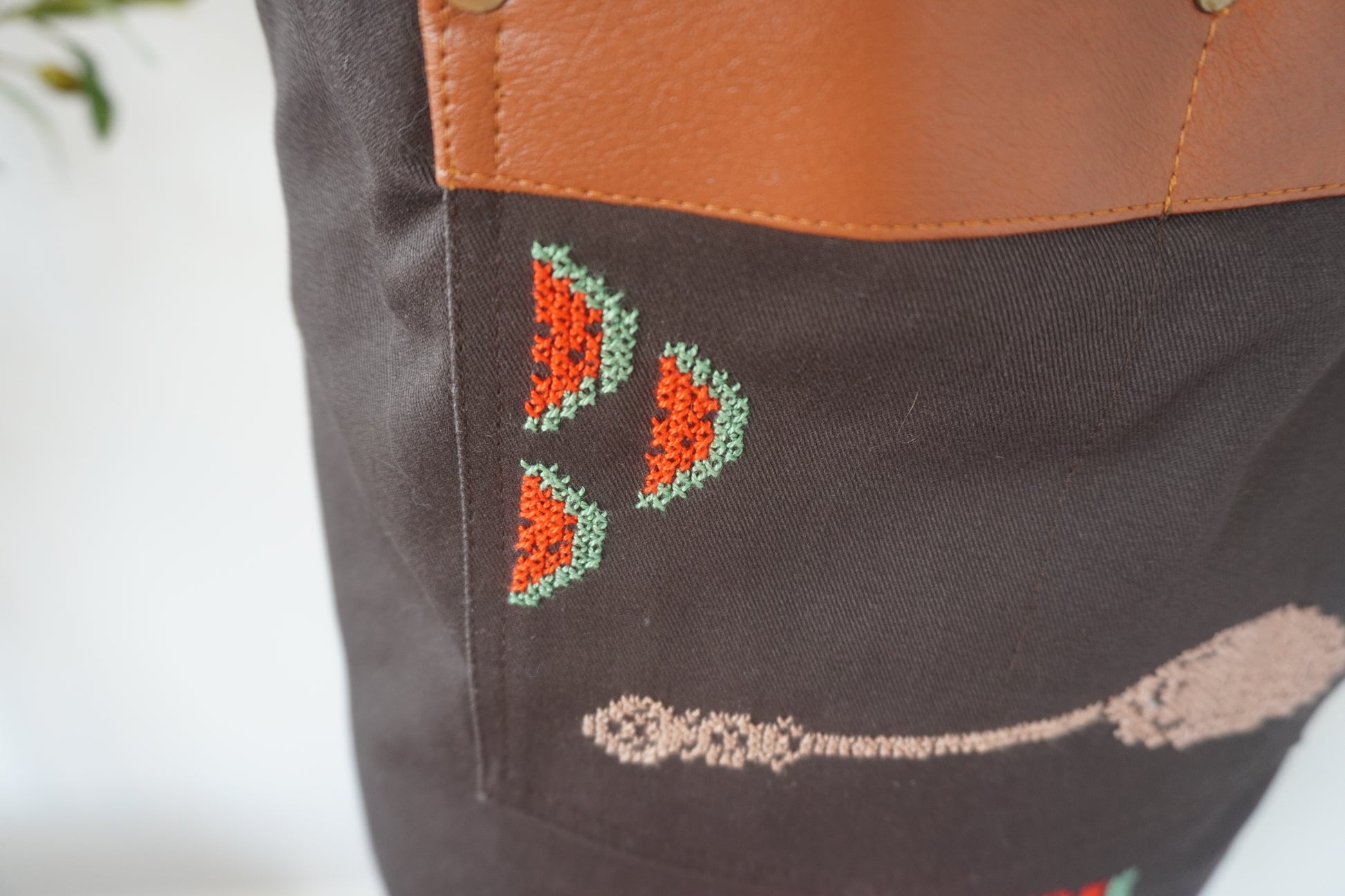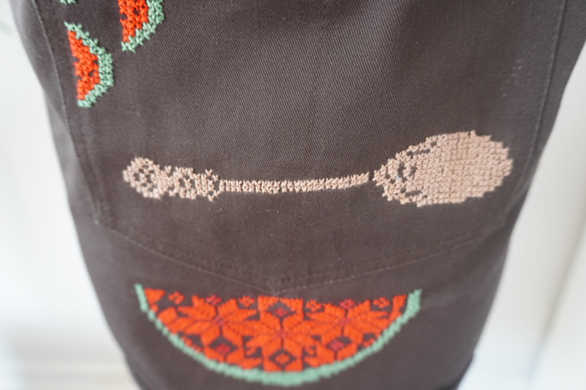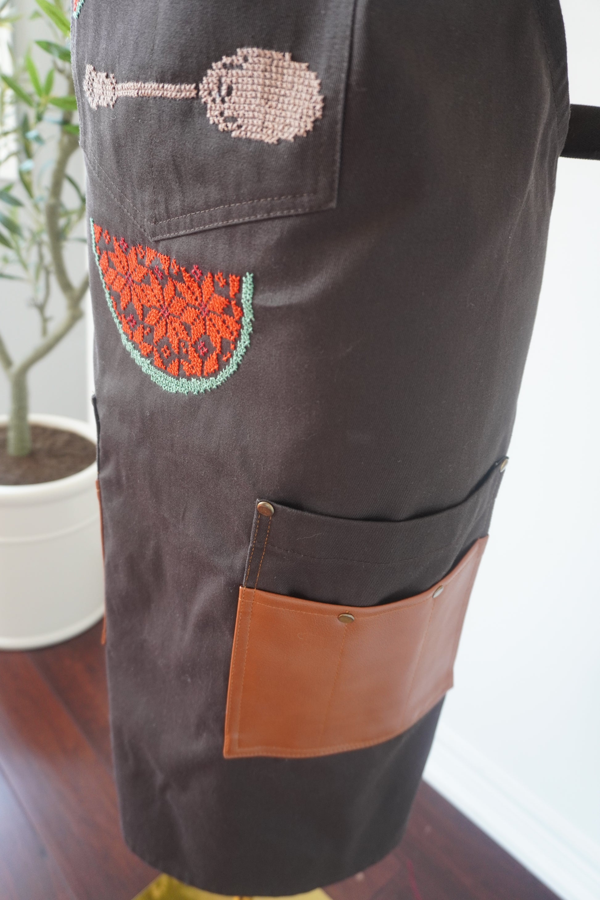 استمتع بتجمعات المطبخ أو الشواء مع هذا المريول البني الجذاب. يتميز بتصميم مميز مع ملعقة وشرائح بطيخ لطيفة مطرّزة على الجيب، بالإضافة إلى تصميم بطيخ مفعم بالألوان في الجزء السفلي. هذا المريول ليس فقط عمليًا ولكنه أيضًا يضيف لمسة مرحة إلى أي مناسبة. مصنوع من مواد عالية الجودة لضمان الراحة والمتانة أثناء الطهي أو الشواء."