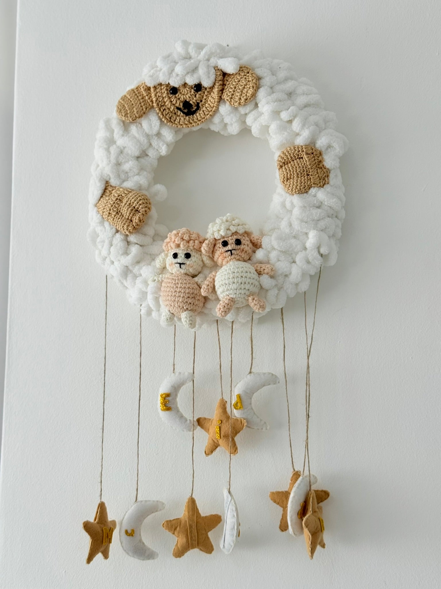 شماعة كروشيه يدوية الصنع للعيد | ديكور جداري على شكل خروف احتفالي