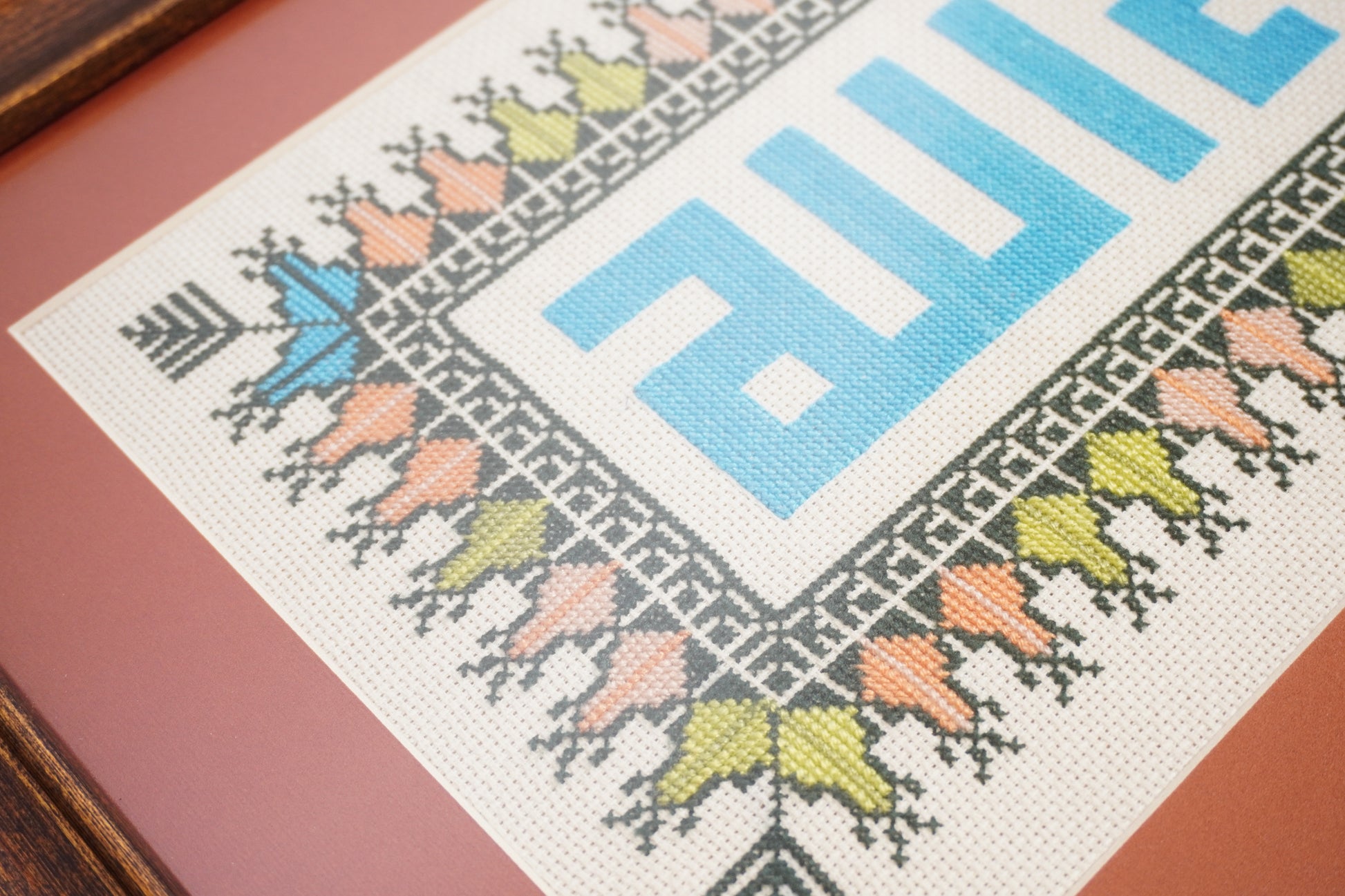 مُطرَّز بعناية بخيوط DMC لضمان المتانة والحيوية، وهو مُثبَّت على سجادة من الألياف الكورية عالية الجودة ومُغلَّف بالزجاج. أنيق، مُنظَّم، وجريء، يُضفي هذا الإطار معنىً روحانيًا وأناقةً فنيةً على أي مساحة.
