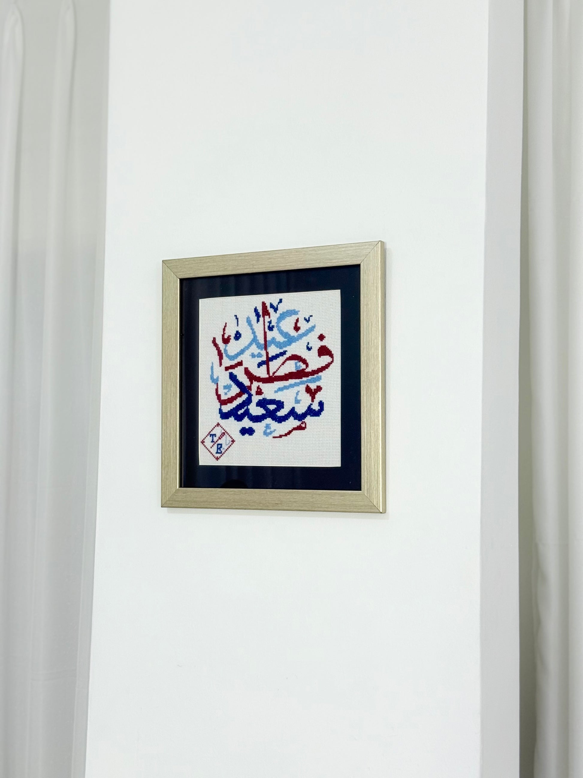 احتفلوا بعيد الفطر السعيد، ذلك العيد الذي يُختتم به شهر رمضان المبارك، مع العائلة والولائم والشكر، بهذه القطعة اليدوية الرائعة. نقشت عبارة "عيد فطر سعيد" بخيوط DMC الحمراء والزرقاء الاحتفالية على قماش إيتامين الكلاسيكي، مُجسّدةً روح العيد المفعمة بالبهجة والتجديد.