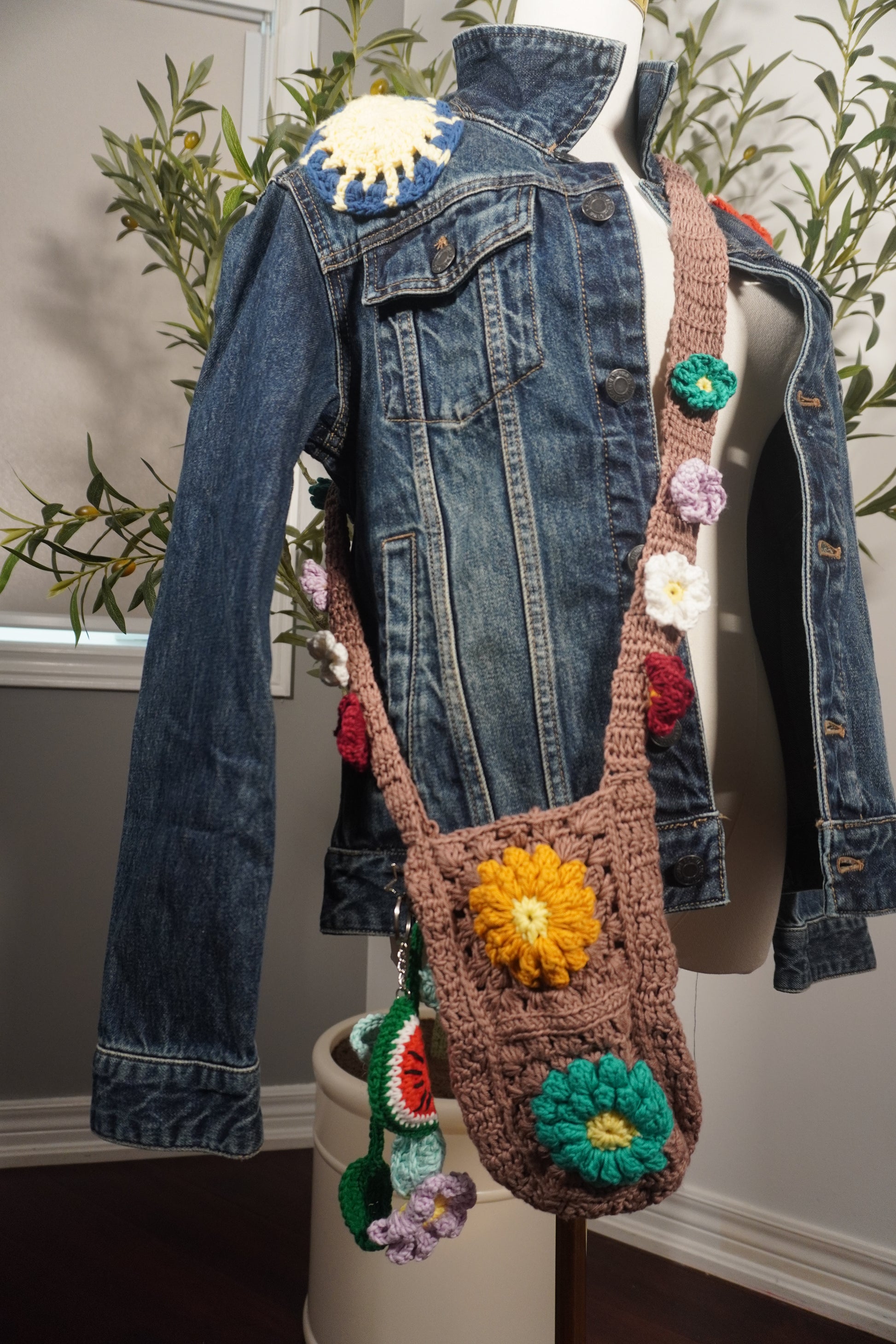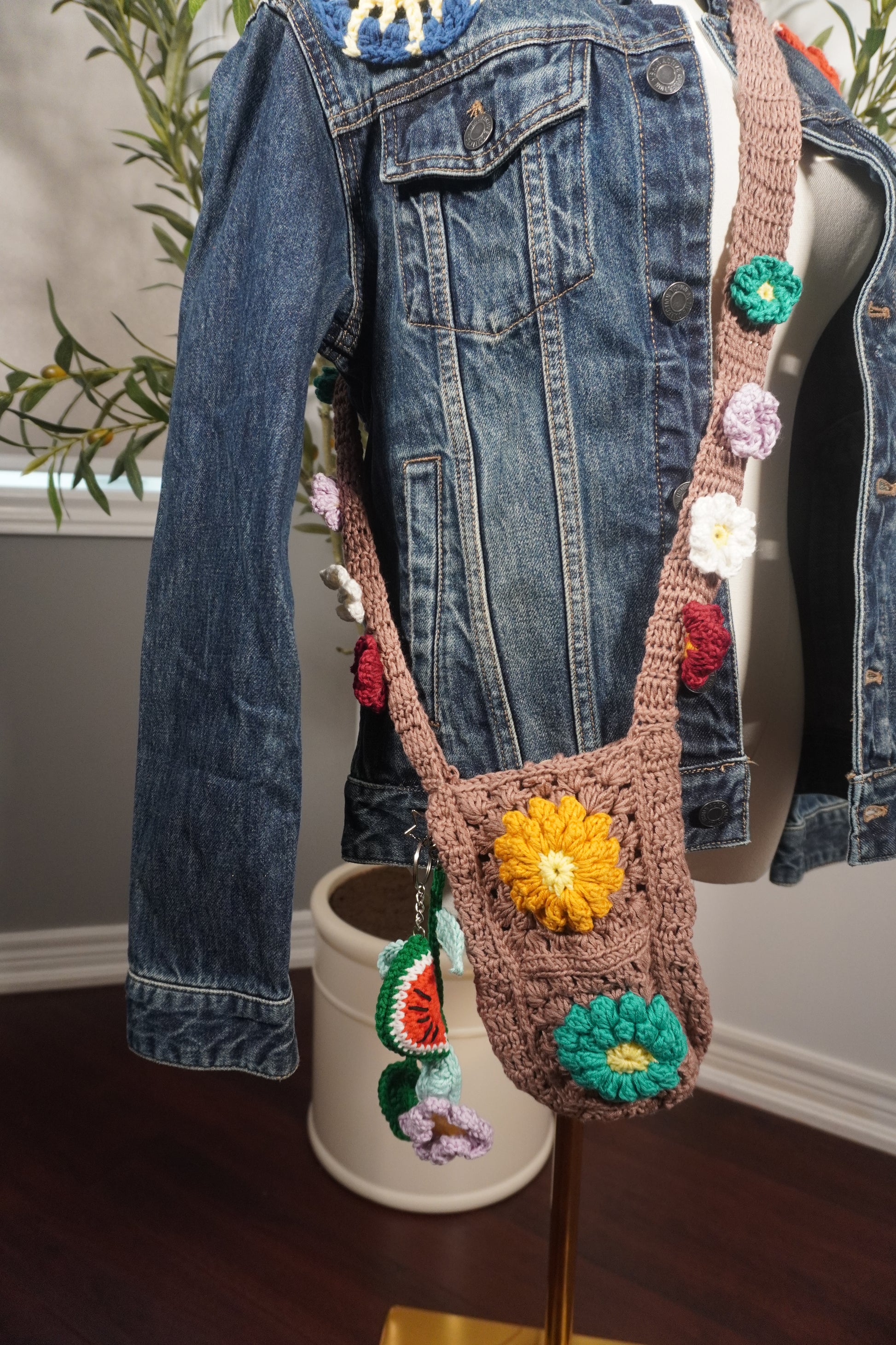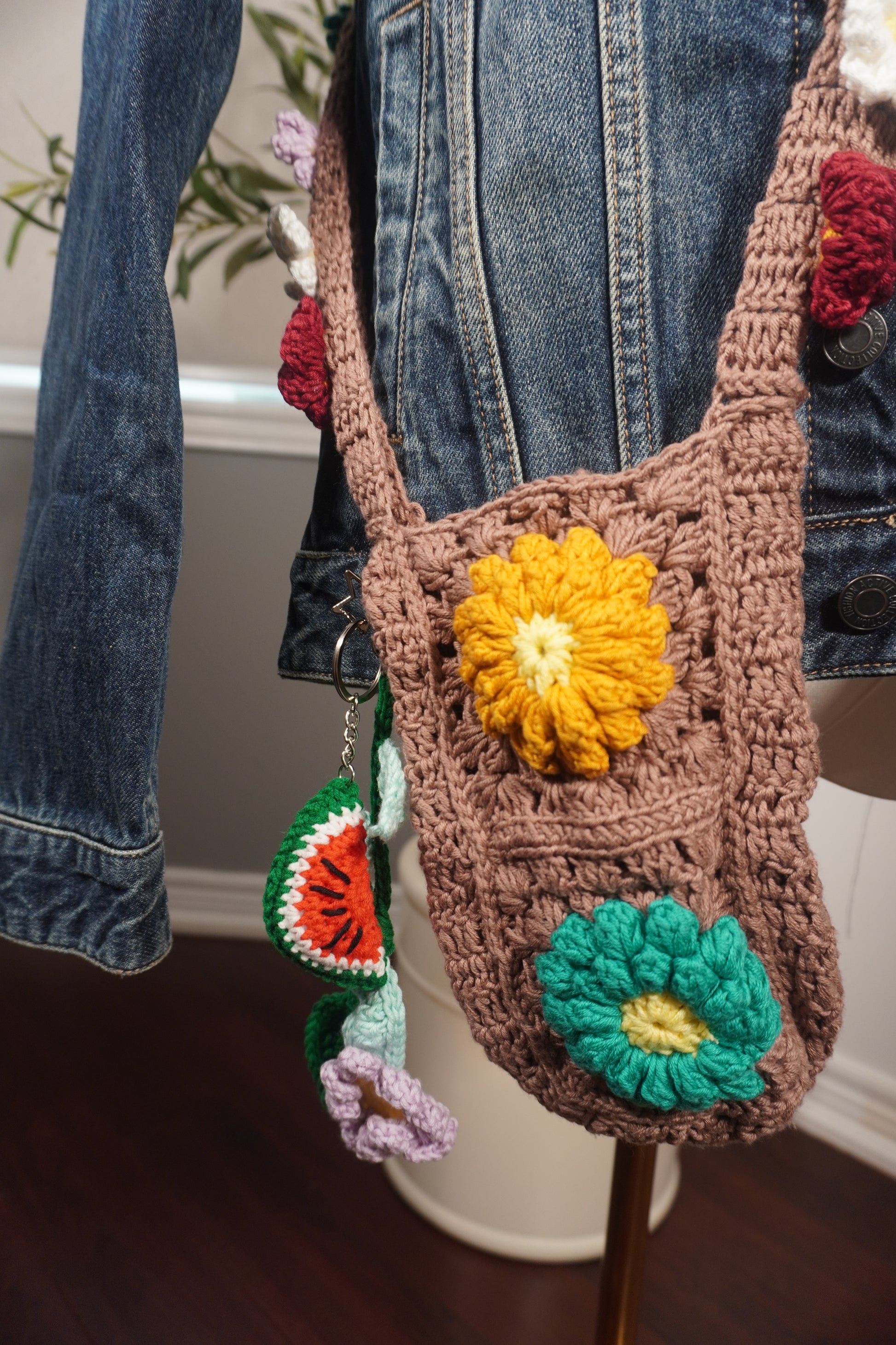 حقيبة كروشيه يديوية فريدة من نوعها وحافظة هاتف مزهرة نابضة بالألوان