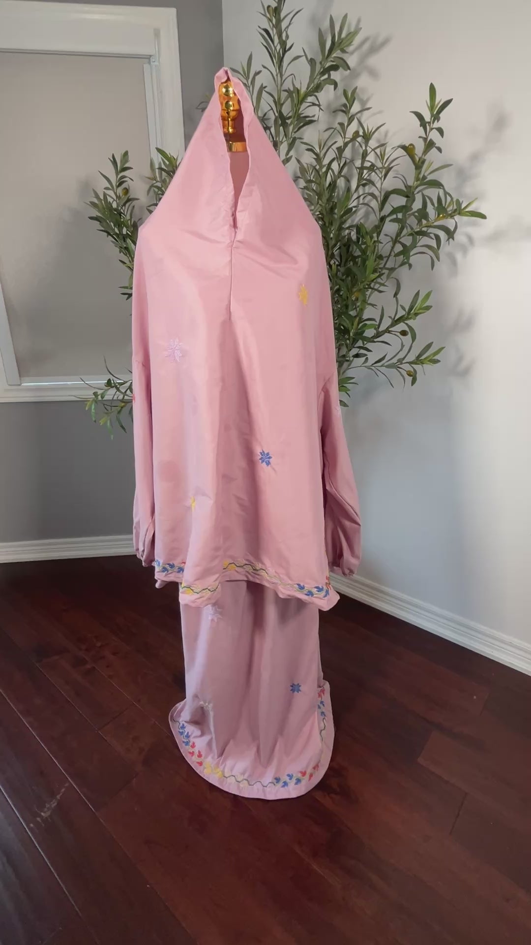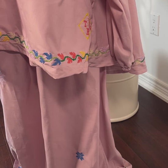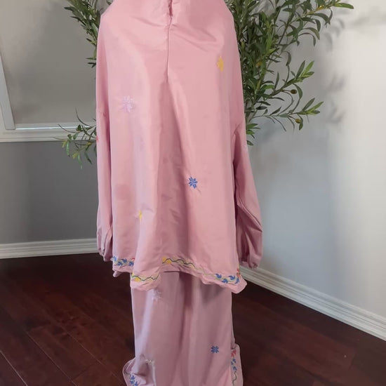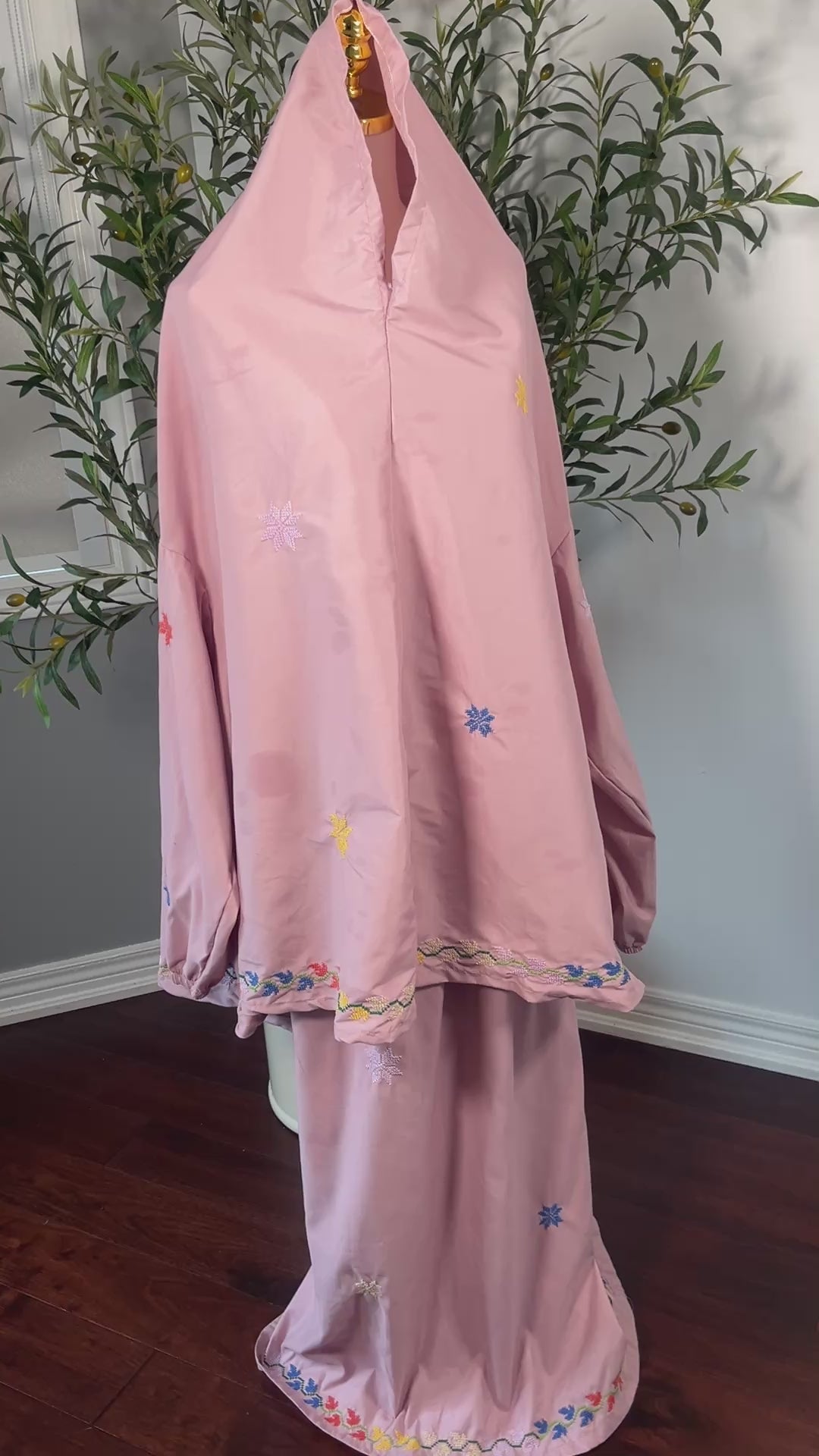 طقم صلاة يدوي باللون البنفسجي الفاتح مع تطريز وأكمام | طقم من قطعتين مع خمار وتنورة