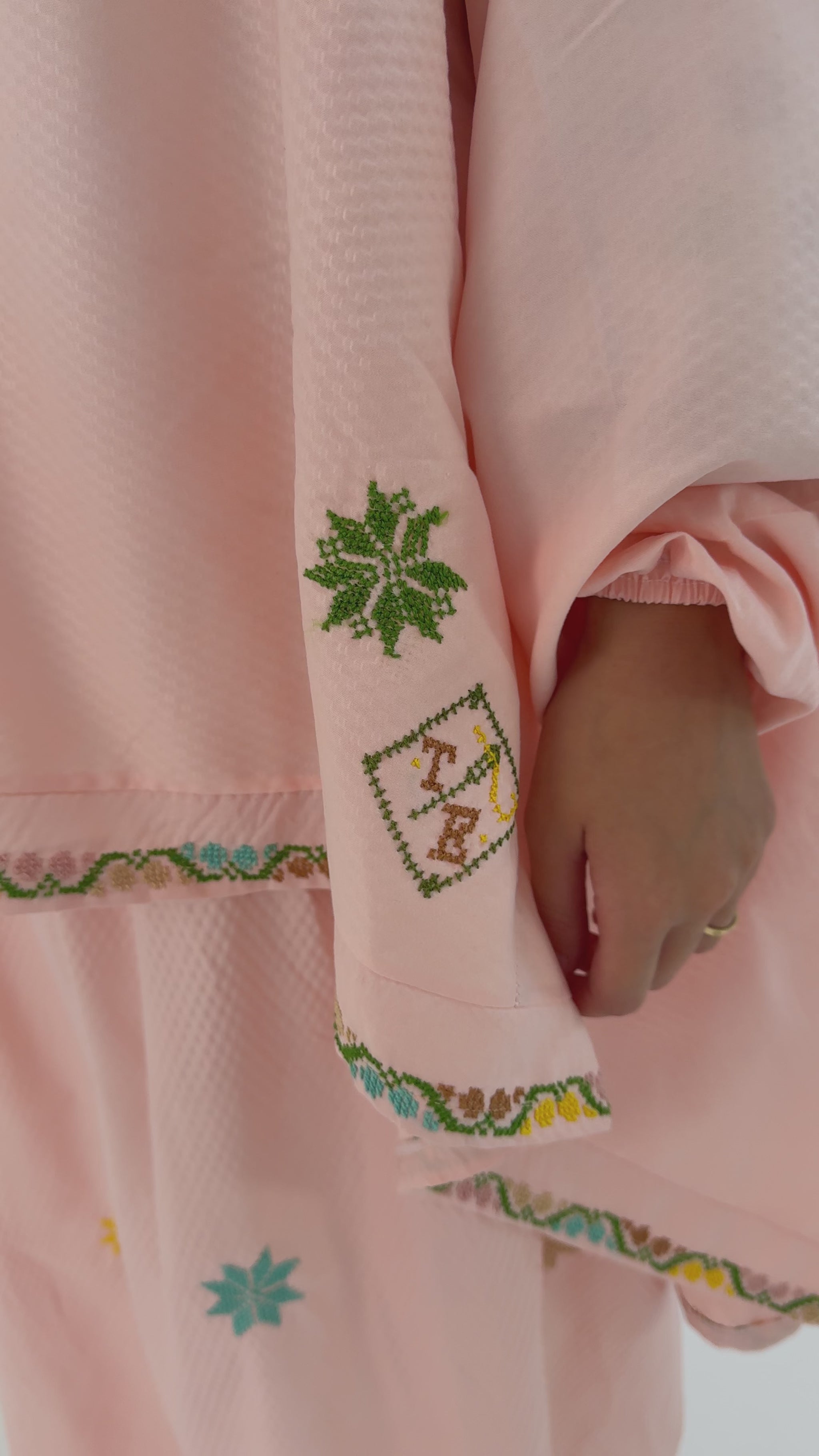 اكتشف طقم الصلاة اليدوي الرائع لدينا باللون الخوخي الجميل، الذي يتميز بتطريز على شكل نجوم وأكمام أنيقة. يتكون هذا الطقم المكون من قطعتين من خمار علوى متدفق وتنورة مريحة بخصر مرن، مثالي للراحة والأناقة أثناء الصلاة. ارتقِ بمجموعتك مع هذه القطعة الفريدة، المتاحة أيضًا باللون الأخضر الفاتح واللون الأزرق الفاتح!