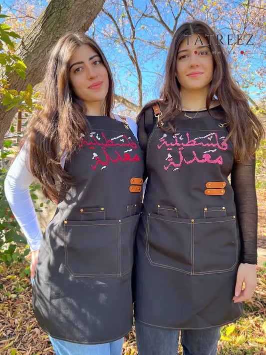 Adjustable Grey-Strap Apron with Hand-Embroidered Palestinian Modified Design in Cumon Color