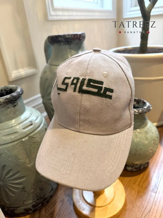 Beige Cap Hat with Embroidered Watermelon Design