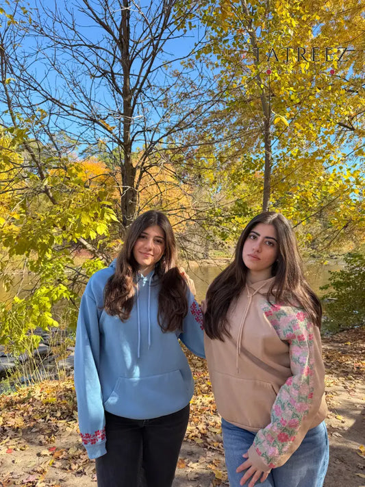 Beige Hoodie with Floral Tatreez Embroidery