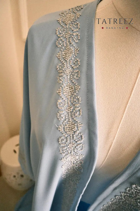 Starry Baby Blue Abaya – Handmade Silver Palestinian Tatreez