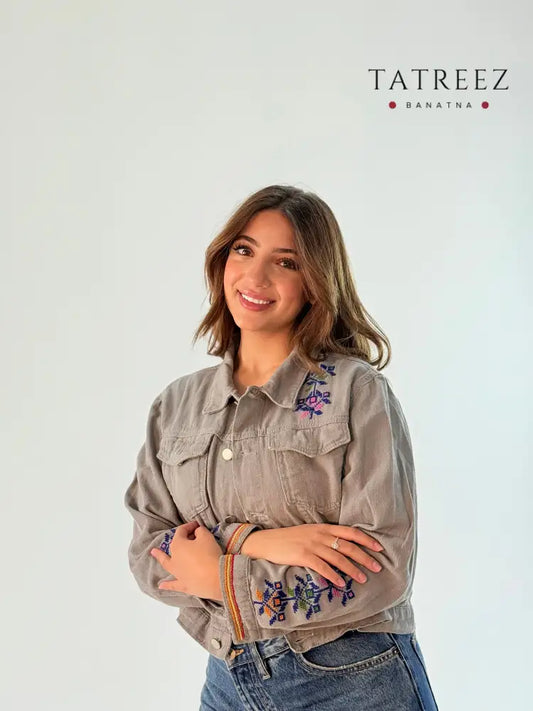 Stylish Grey Jeans Jacket with Unique Embroidery Designs | Handcrafted Beauty