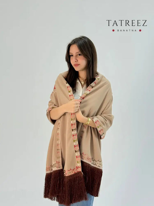 Swan Embroidered Georgette Shawl | Tatreez Banatna