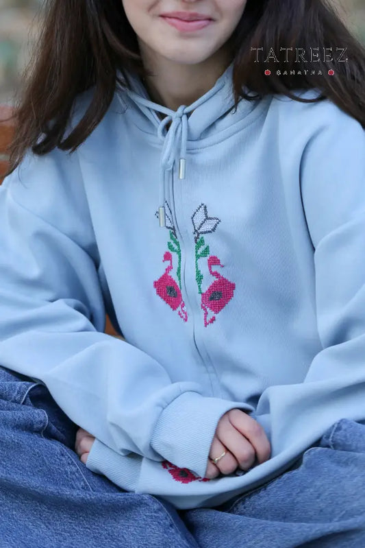 Swan Light Blue Hoodie – Handmade Palestinian Tatreez & Swan Bracelet