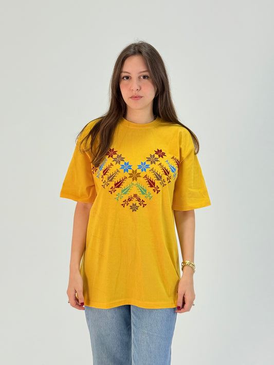 Yellow T-Shirt with Kanaan Star Embroidery | Handmade Palestinian Tee