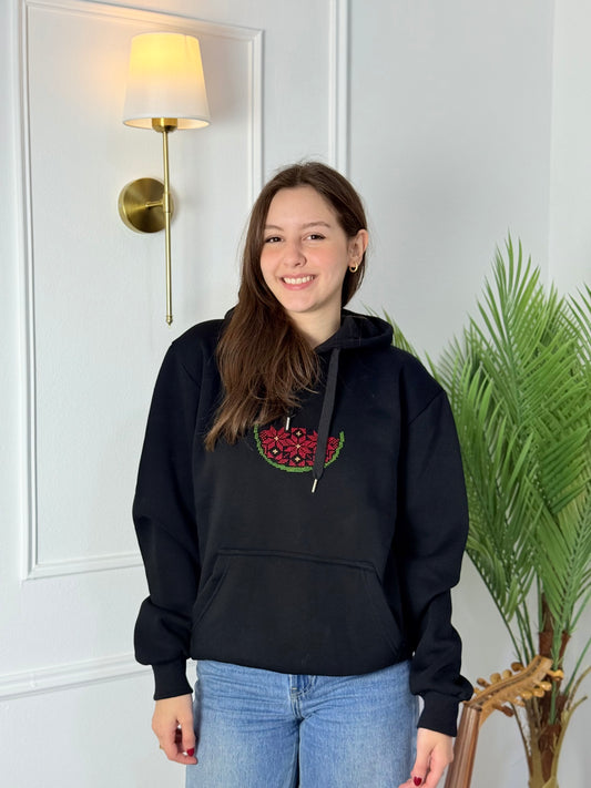 Embroidered Watermelon Black Hoodie | Handmade Palestinian Tatreez