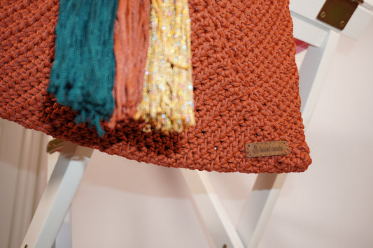 Handmade Crochet Brick Terracotta Bag with Tassels | Tatreez Banatna