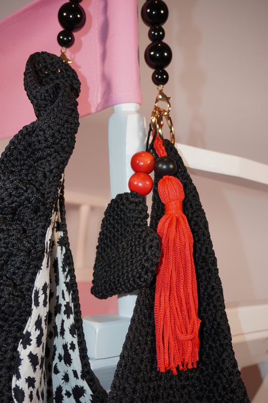 Handmade Crochet Black Bag with Tassels | Tatreez Banatna