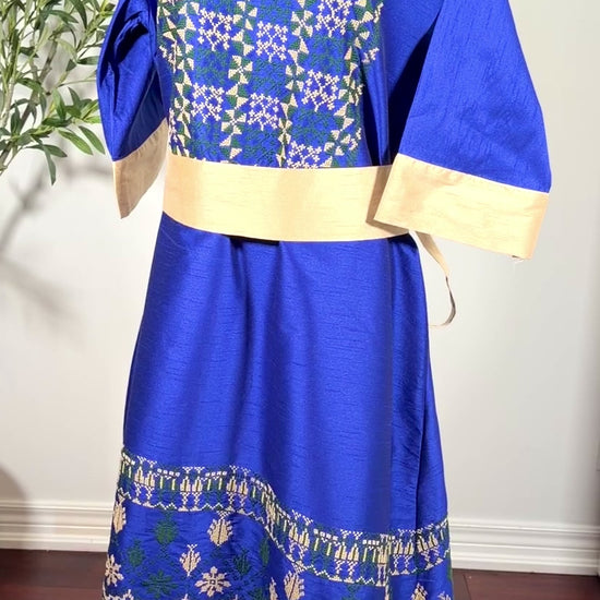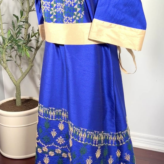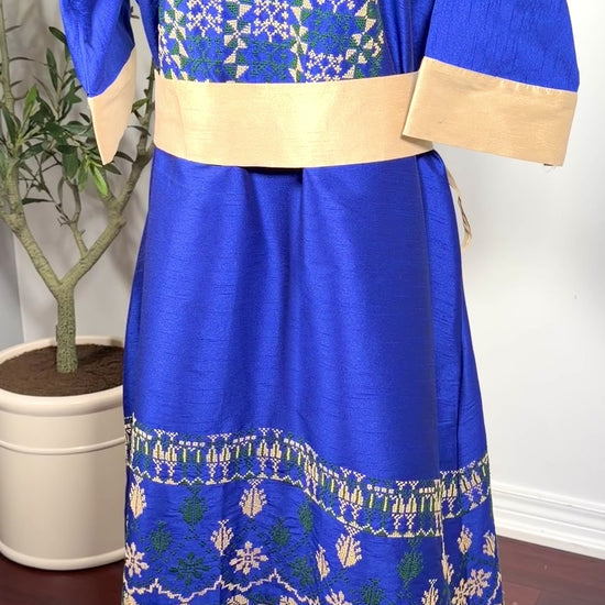 Horea Elegant Handmade Palestinian Thobe in Royal Blue with Traditional Tatreez Embroidery