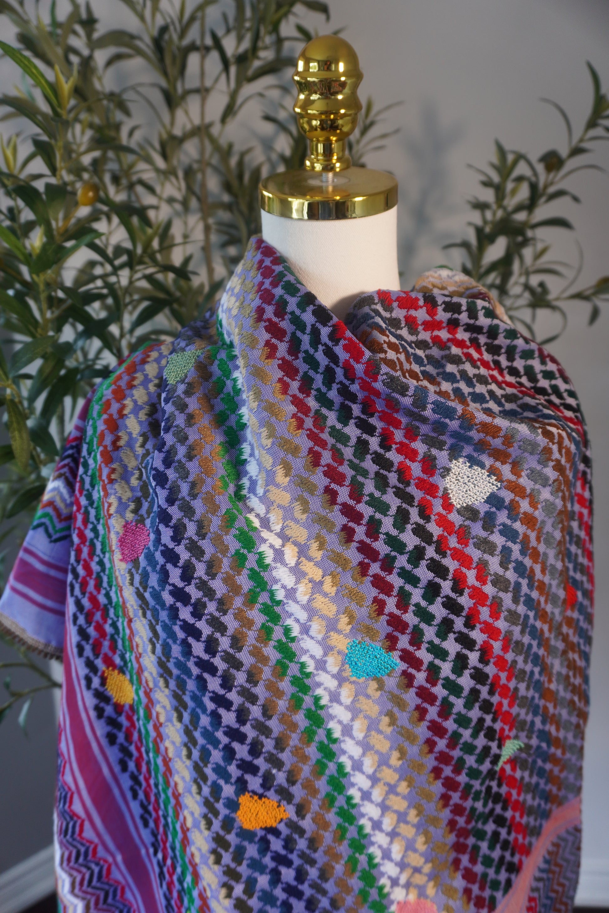 Handmade Colorful Kofea with Bright Embroidery on a Purple Base
