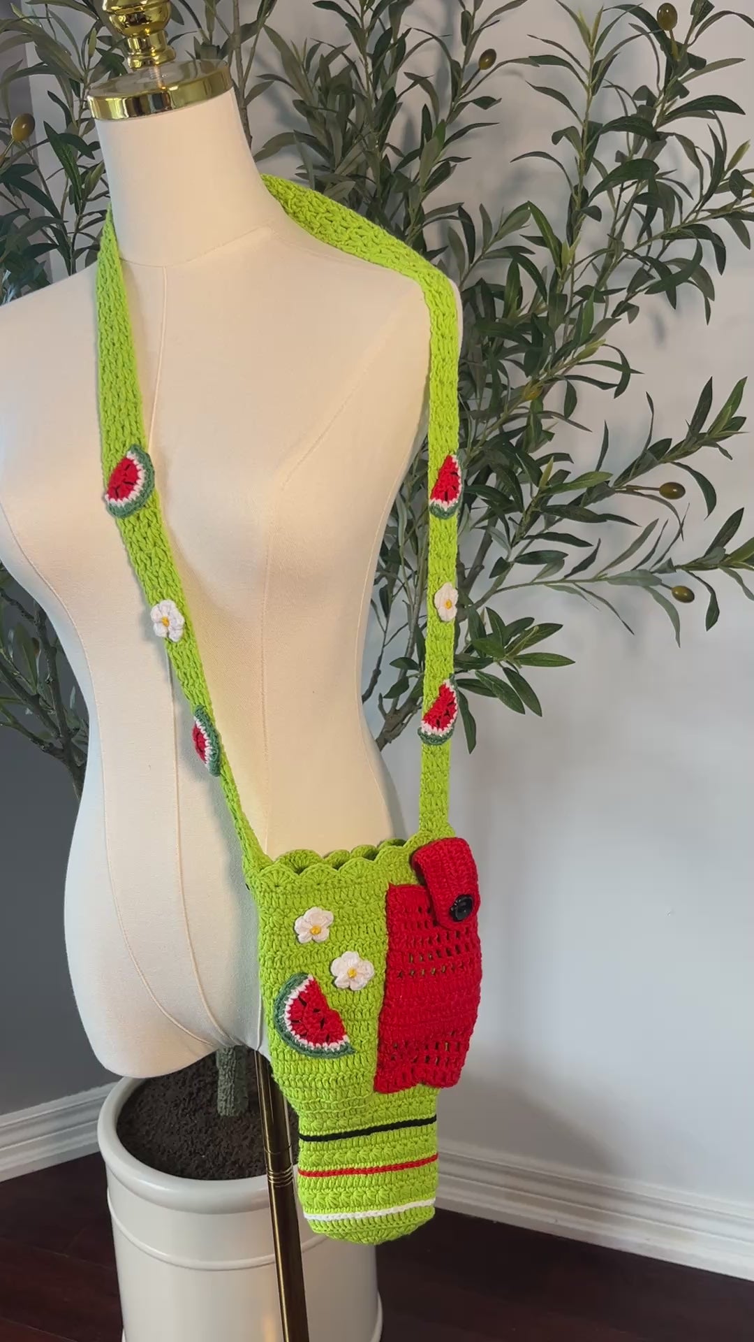 Elevate your hydration game with our vibrant Handmade Crochet Stanley 30oz Bottle Holder, featuring a playful bright green watermelon design adorned with charming white flowers. This artisan-crafted piece is not only functional but also adds a touch of whimsy to your daily routine.