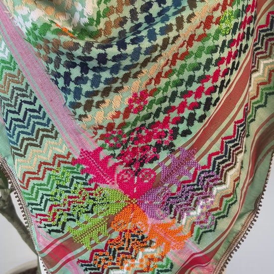Vibrant Green Colorful Hand-Embroidered Kofea