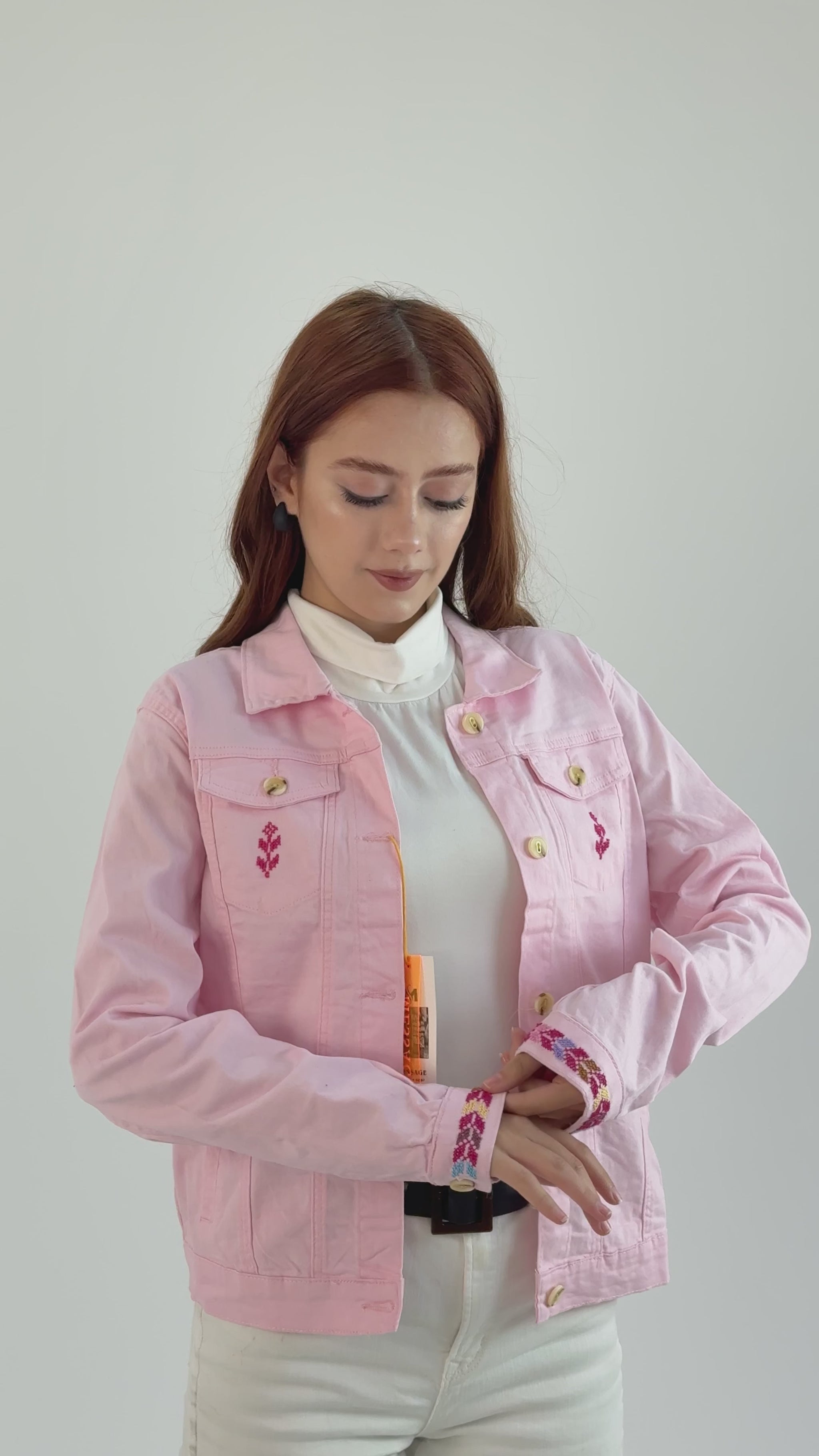 Introducing the Rose Chic Denim Jacket—a stunning pink jacket featuring exquisite embroidery on the back that adds a unique flair to your style.