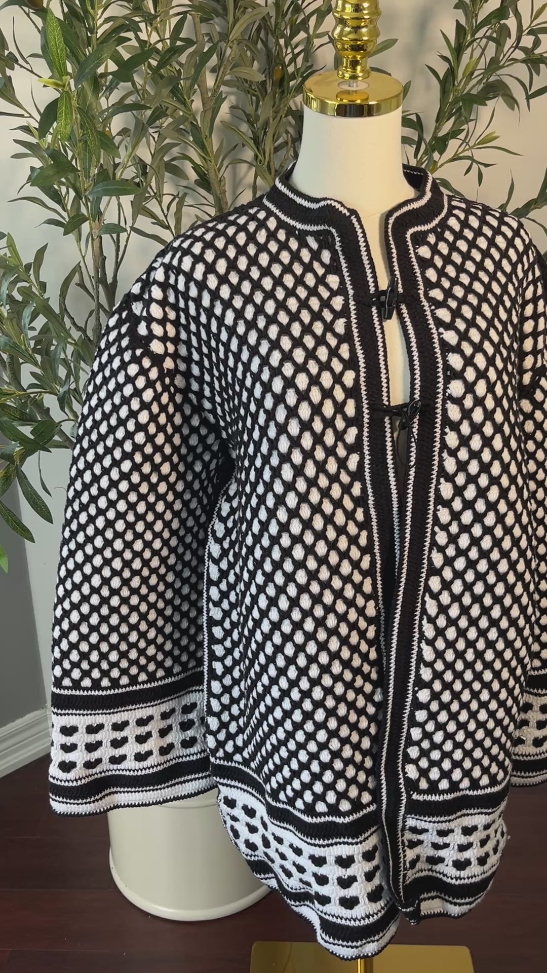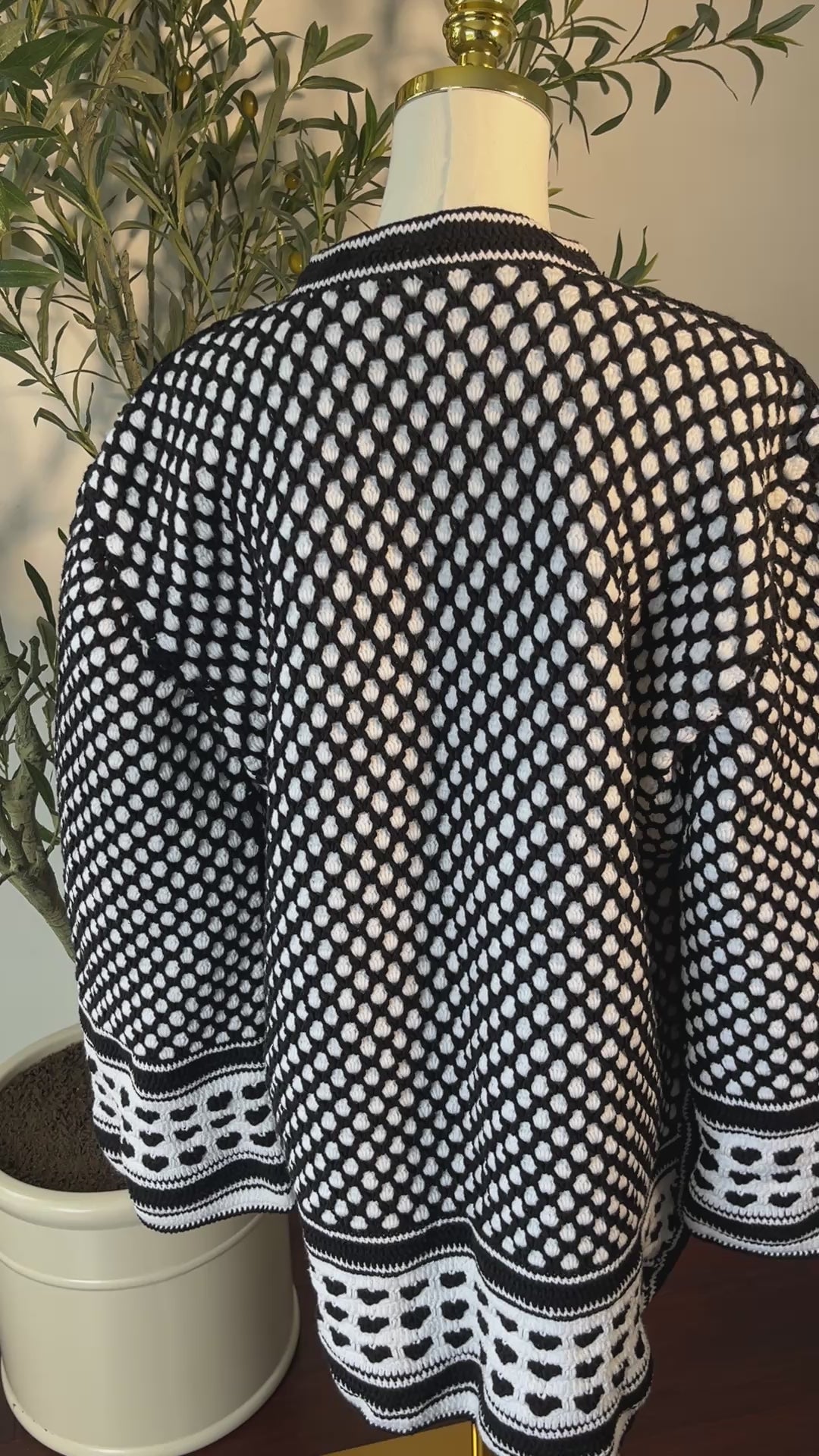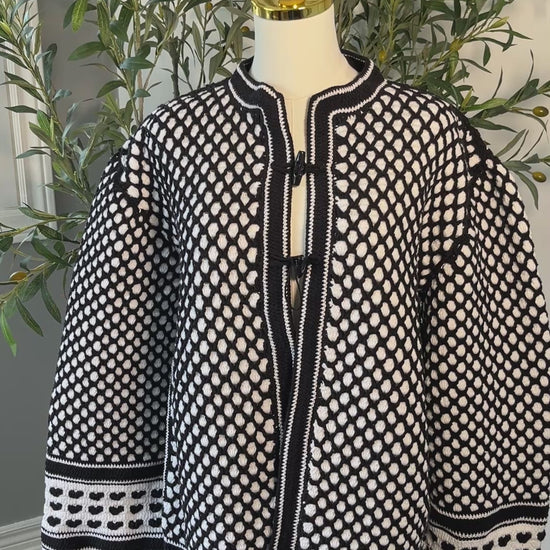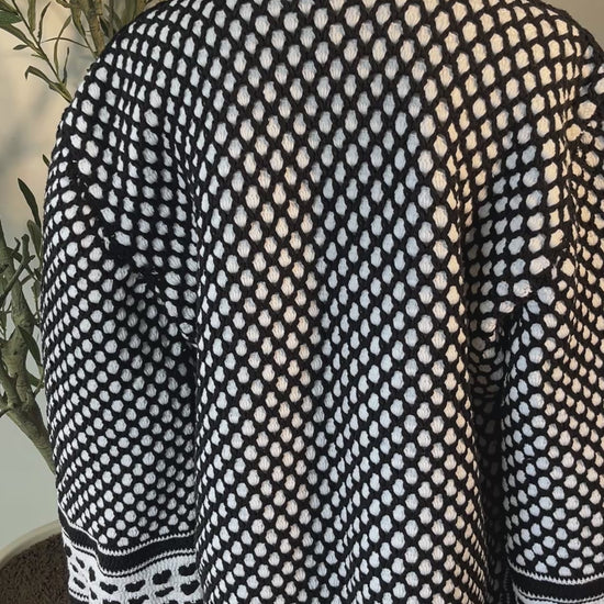 Discover our elegantly crafted handmade cardigan featuring a stunning kofeya design. This unique piece blends traditional Middle Eastern heritage with modern fashion, offering both style and comfort. Perfect for layering, it’s an ideal addition to any wardrobe, showcasing cultural pride and sophistication.